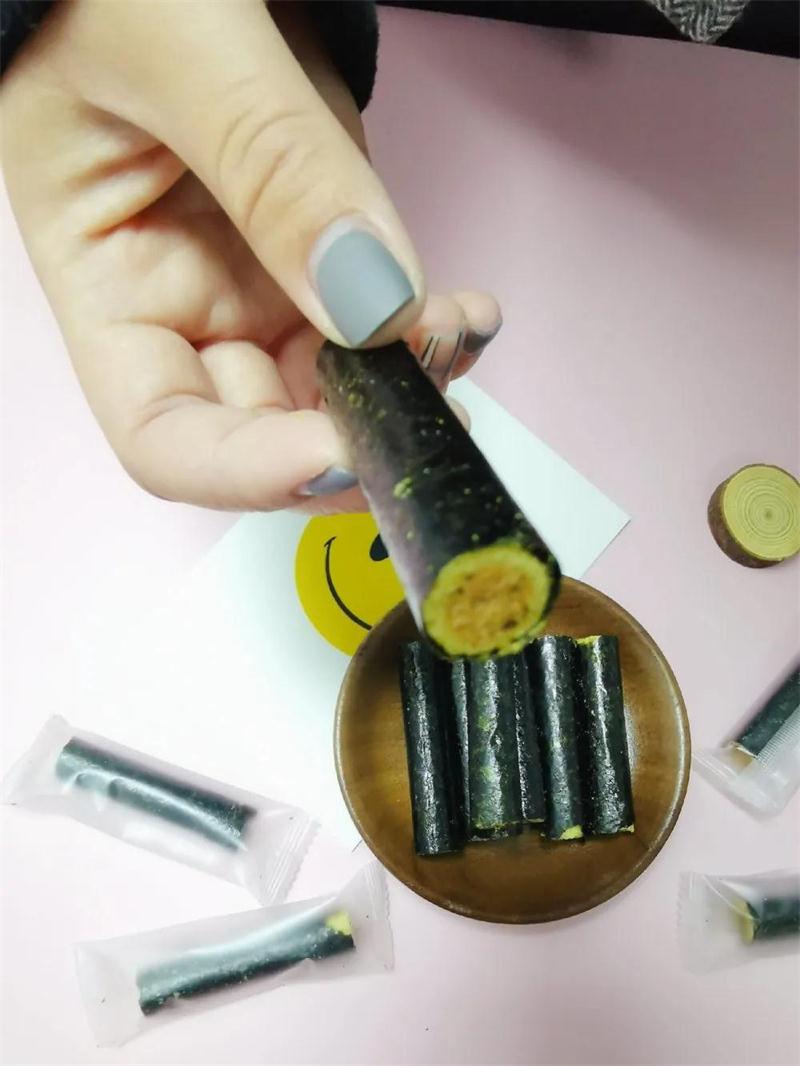 传统古法制作+现代先进的生产工艺相结合烘烤出来的海苔卷质地薄脆松香四溢不油腻卷曲烘烤工艺,锁住每一支的鲜香