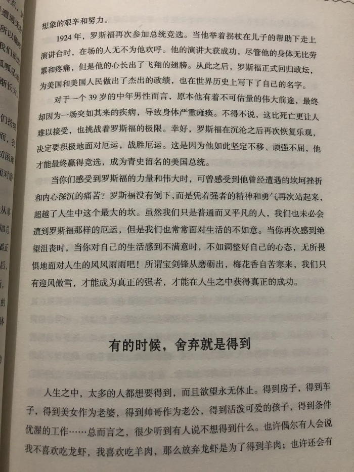那天拿这本《与其讨好全世界,不如强大你自己》的时候,有人问我为什么会喜欢看励志类的图书?她们觉得这类书籍大多都是天马行空的空谈别人成功的事迹,一些人人都懂得大道理。没有多大用处,甚至会误导人。看完书热血沸腾几天,过个十天八天又会被打回原形。