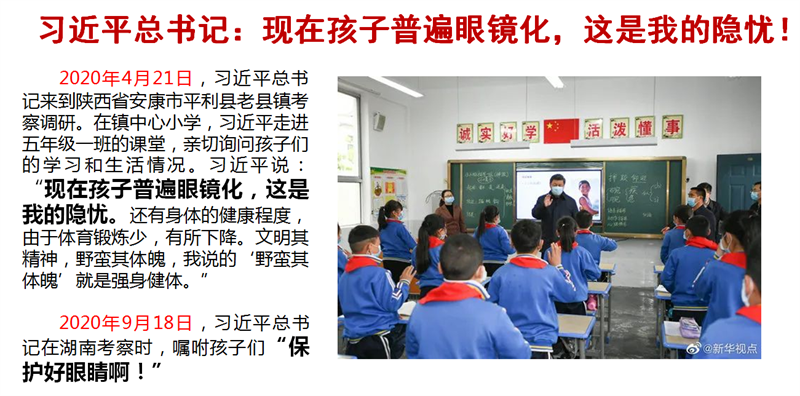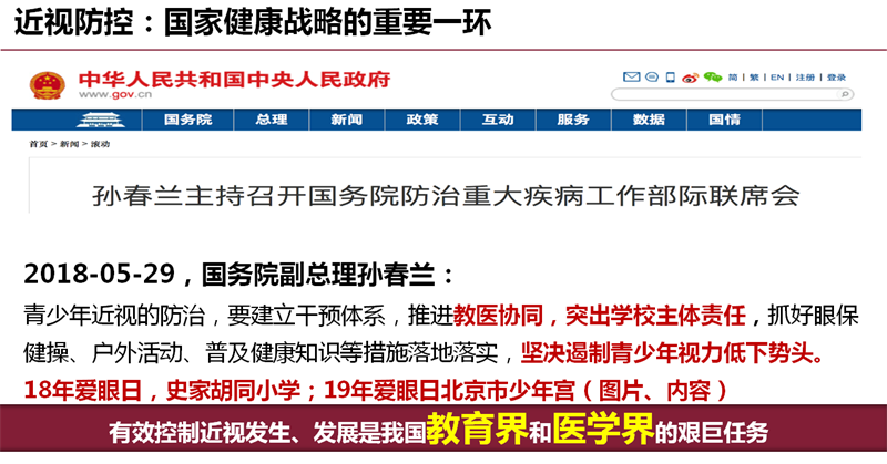近视防控已经不只是一个社会公共卫生问题,它是体现国家意志、关系国家未来的政治问题;是事关民族复兴和国家前途,影响中华民族可持续发展的命运问题;是关系民族体质健康、关系国家人才培养质量的危机问题;是关系人民群众对美好生活向往和追求的民心问题!做好近视防控工作,是国家和民族的呼唤!