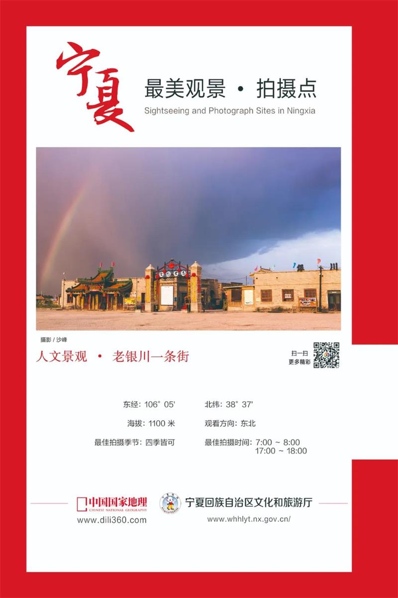 2012年,镇北堡西部影城仅用97天时间修建的“老银川一条街”,逼真地再现了老银川旧貌。街道以复制旧时的建筑物为中轴,以解放前银川市最繁华的“柳树巷”为蓝本,用120米长的街道向游客立体呈现曾经的边陲名城。走进“老银川一条街”景点,街道两边尽是极具年代感的建筑:“百川汇”“天城西”“合盛恒”“敬义泰”“大陆文化社”“大公报宁夏分馆”“宝珍照相馆”“银川汽车站”……街道中间还原了老银川“羊肉街口”“米粮市”巷口的盛况,以及著名的“承天寺戏台”。这些银川历史上的大商号、地标建筑,沉淀着历史沧桑,给游客一种穿越之感。