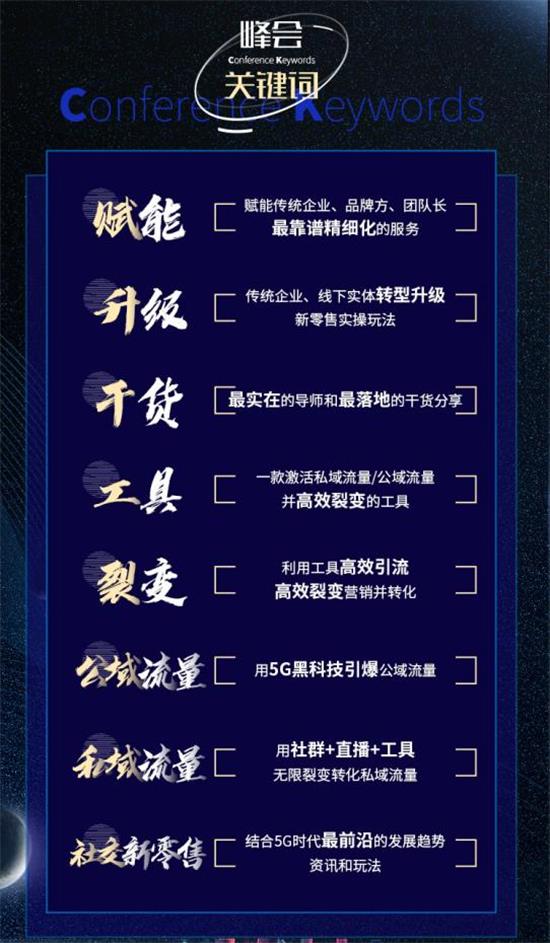 本次大会将对于上述痛点问题以及“赋能、升级、干货、工具、裂变、公域流量、私域流量、社交型零售”等8个关键词展开深入讨论,并带来符合时代发展的全新解读。