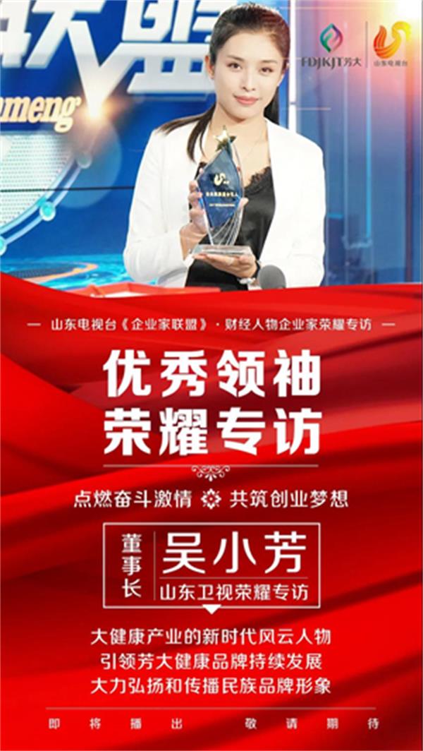 近日,芳大健康董事长吴小芳女士接受了山东电视台推出的财经人物访谈类电视节目——《企业家联盟》荣耀专访,取得圆满成功。