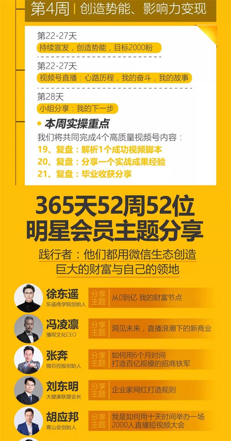 它涵盖了当下最火的视频号变现、个人品牌变现、企业社交化运营、社群运营、微信好友管理、视频制作与剪辑、朋友圈节奏宣发,7大版块。你再也不用去找7位导师去被7种思想影响了,这样会走火入魔,也不用再去报数十门课程,花上十几万的学费,甚至再去消耗3至5年时间。