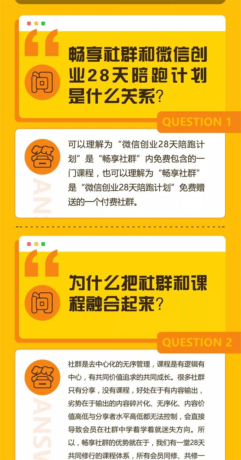 经过7年的沉淀,6个月的打磨,我研发出这套《微信创业28天陪跑计划》,把我过去7年的经验全部装进这28天的训练计划中。很多人问我,为什么你做事如此简单,我会说,化繁为简,我的7年,学习、成长、失败、收获,走了很多弯路,我知道哪里行得通,哪里行不通,才会有今天的《微信创业28天陪跑计划》。