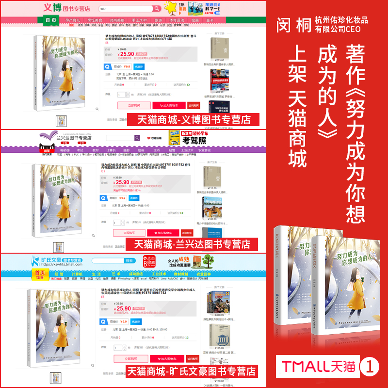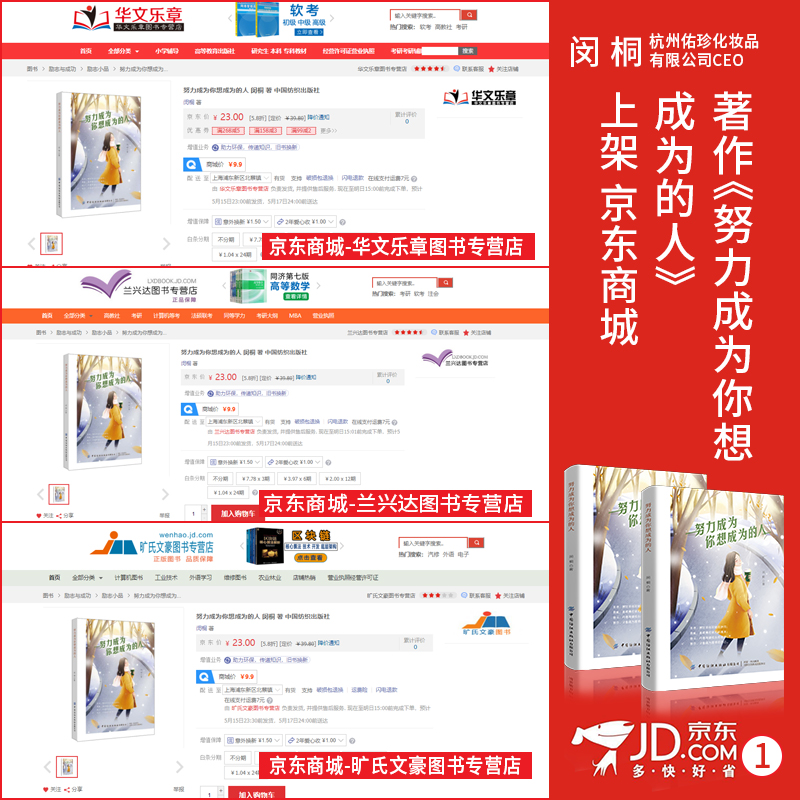 近日,由中国纺织出版社出版、出书大师网全权出版策划、香港佑珍国际CEO闵桐老师创作的著作《努力成为你想成为的人》正式上架京东等各大图书销售平台,与广大读者朋友们见面,从而开启了火爆热销序幕。