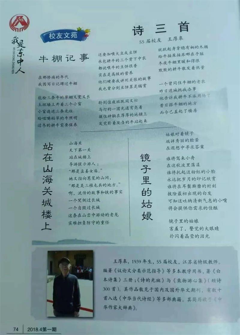 王厚皋三首诗发表在校友刊物《我是东中人》