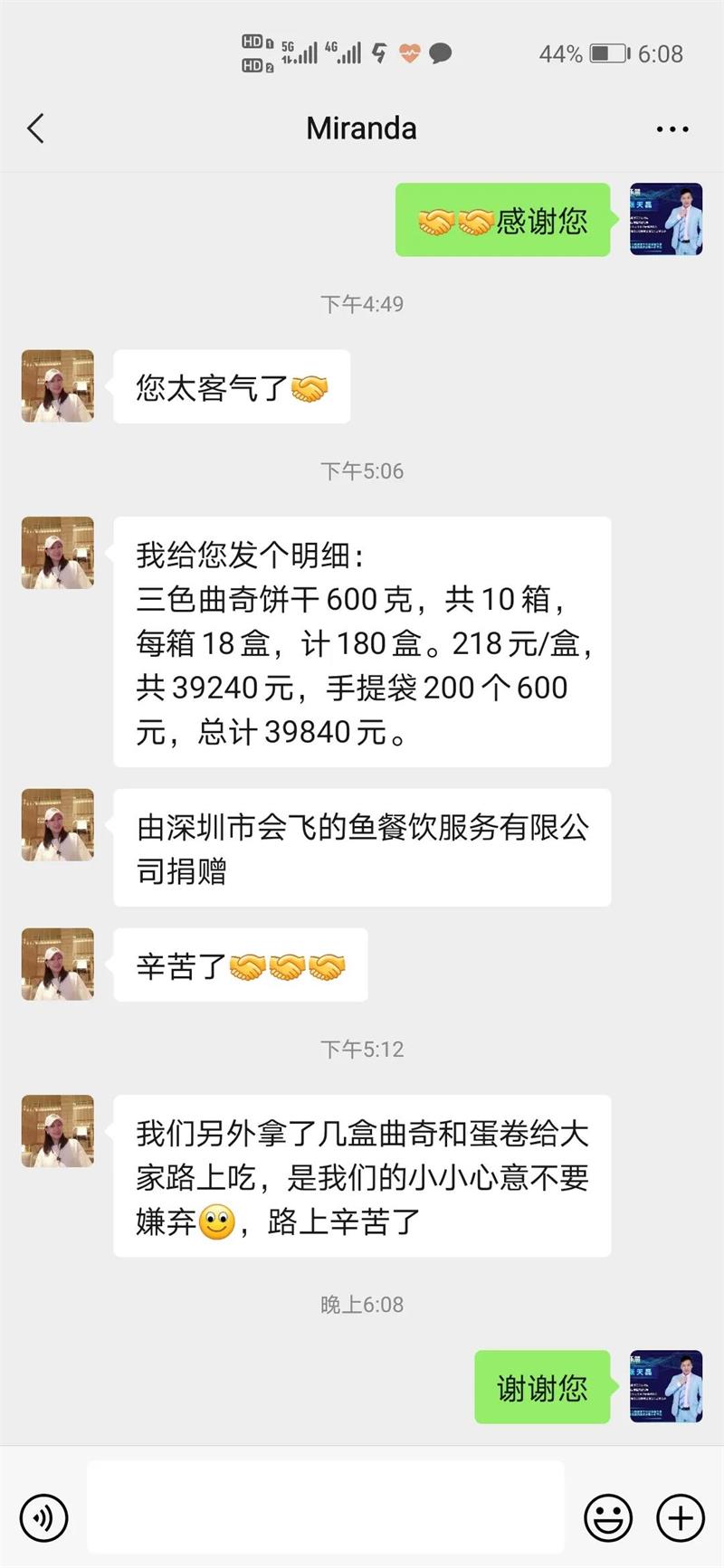 就在乐盟团队在整理物资之时,现场发生非常暖心的一幕,在公司的同一栋写字楼的另外一家公司(深圳市会飞的鱼餐饮服务有限公司),受到乐盟公司爱心捐赠的鼓舞,自发性的捐赠价值近4万元物资(180盒曲奇饼干,200个手提袋),让我们代为运赴灾区,还有附近的居民也都纷纷捐赠生活用品物资,这就是爱的力量,爱同样是会传递的。