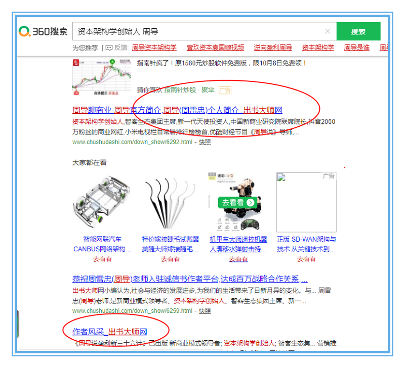 周导: 贺资本架构学创始人周导诚信书作者关键词被360、搜狗永久收录,影响力节节攀升