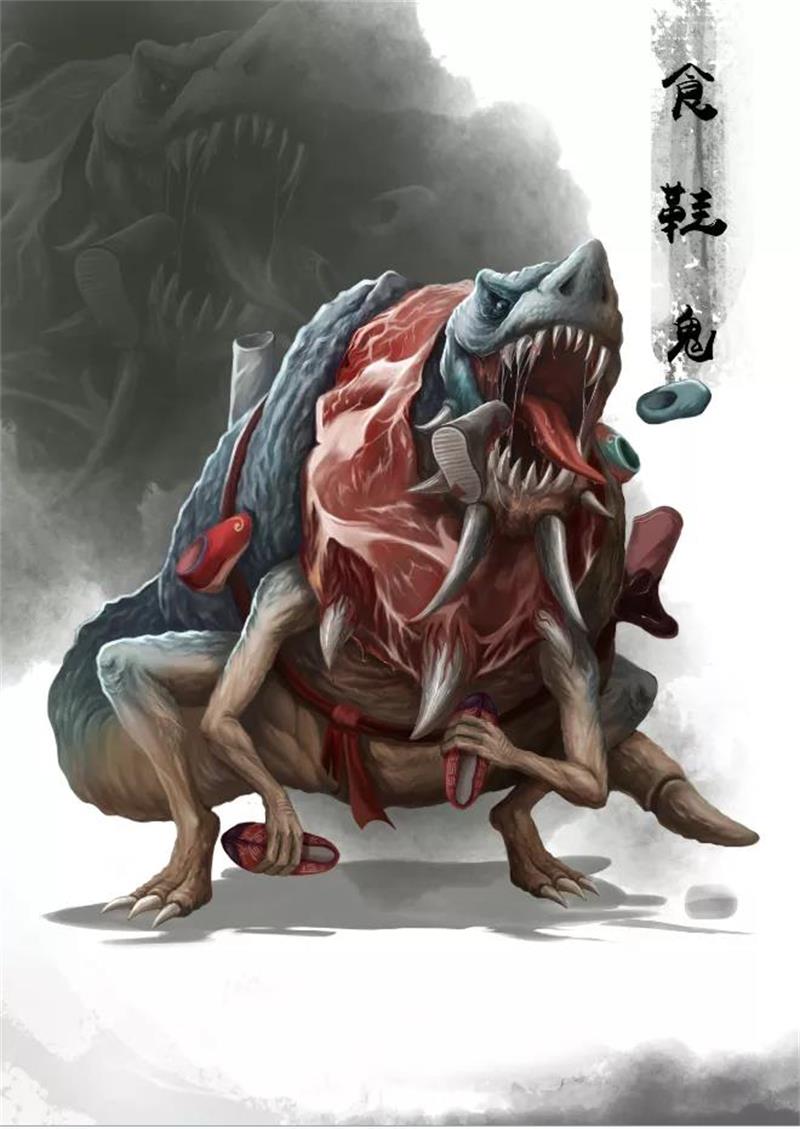 食鞋鬼,相传中国古代有一种怪物,很喜欢吃人类的鞋,本性善良,还会报恩,最喜欢藏在洗手间。此鬼皮肤黝黑,身形庞大,有一双像鸟爪般锐利的手,而且双眼凹陷,鼻子高而尖,嘴也像老虎一样大,还会说人话。这种怪物不会伤害人,只会强抢受害人的鞋,然后狼吞虎咽地吃下肚,最可怕的是鞋会流出鲜血,不停地惨叫。如果大家遇到此怪物,还是带它去鞋店吧!