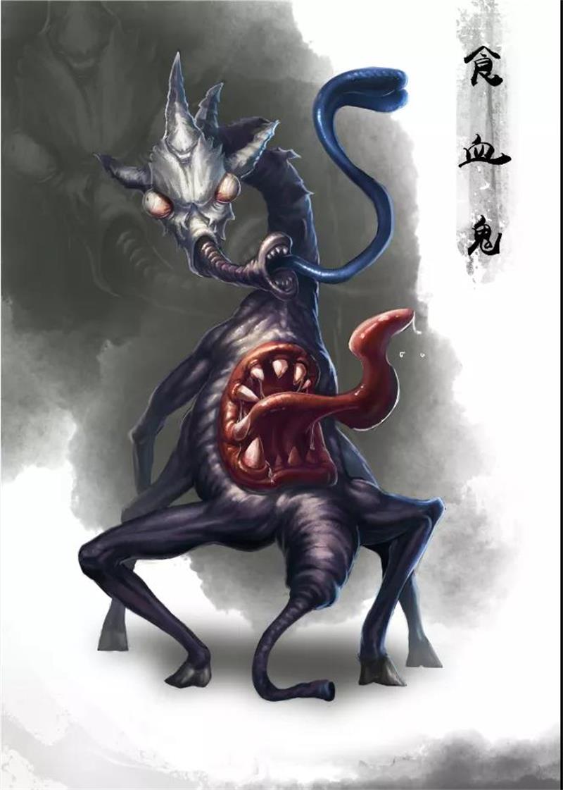 食肉鬼,面貌丑陋不堪,令人心生憎恶,此鬼生前是屠夫,屠杀牲畜并将各种牲畜切割出售,靠缺斤短两赚昧心钱,或挂羊头卖狗肉,以假充真。变成食肉鬼后,专门吃腐烂的动物尸体,然后传染毒菌、祸害生灵。因此对于动物死尸,不可乱抛于垃圾桶或水沟等脏乱之处,以免被此鬼所吃。《正法念处经》所记载三十六鬼之一。