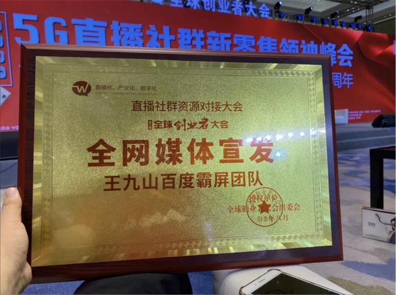 王九山霸屏团队获得《2020最具影响力服务商创始人》奖项