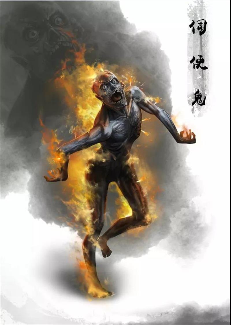 伺便鬼全身的毛孔都在喷火,可这火烧不到别人,只能烧它自己。于是,它时常被烧得疼痛难忍,四处狂奔乱叫。唯能入逆塔而行、敬拜天神庙及淫秽人身中,食其精气。生前诓骗别人钱财,或趁火打劫,放高利贷的人便会受此恶报。民间传说,此类鬼专门吸人类大便的热气。因此,人类不宜在露天便池及破露的厕所上大便,以免结此鬼缘。佛教中三十六种饿鬼之一。