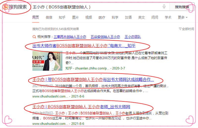近日,BOSS创客联盟创始人王小亦个人品牌网站被360、搜狗、百度三大平台收录,该举措是一种有效提升品牌价值的方式,同时是一种全面展示品牌实力的有效形式,能够大大提升周导先生的大众知名度,在各大网络平台形成一股流量传播风暴,为其带来丰厚的流量,最终成功实现其“IP变现”。