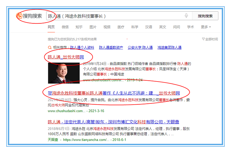 近日,鸿途永胜科技董事长陈人通个人品牌网站被360、搜狗、百度三大平台收录,现在只要在中文搜索引擎360、搜狗、百度输入“鸿途永胜科技董事长 陈人通”相关关键词,便能够看到陈人通老师的诸多信息,包括个人简介、著作、品牌故事。这充分说明陈人通老师的个人影响力之强,从而进一步增强其社会美誉度,引发社会公众更为广泛的关注和认可。