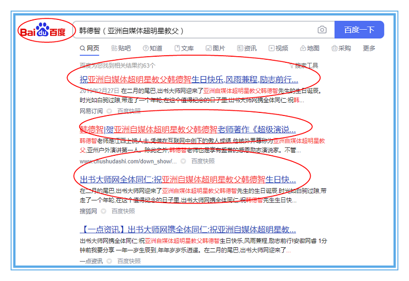 经前期传播与积累,亚洲自媒体超明星教父韩德智书作者营销网站被360、搜狗、百度平台收录,只需要在平台搜索引擎输入“韩德智”相关关键词,便能获取系统详尽的品牌内容。这种方式既便捷又有效,能够确保大众快速搜索到韩德智老师及其个人品牌相关内容,全方位了解其个人品牌魅力,提升韩德智老师大众知名度。