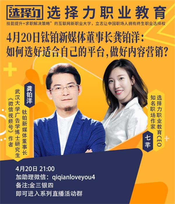 本文为4月20日,七芊对话《微信视频号营销实践》作者龚铂洋老师直播干货内容。