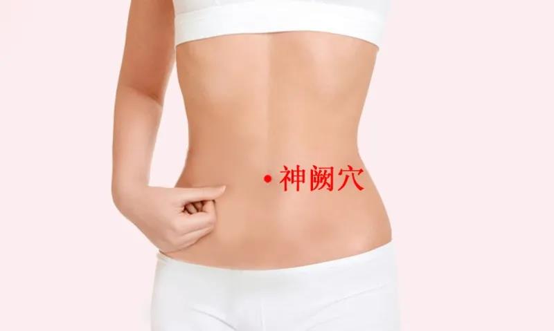 神阙穴,位于肚脐中,中指一压即是。