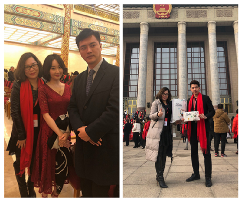 ➤爱一贝姿创始人陈巧燕与国内知名演员程媛媛,刘晓虎合影