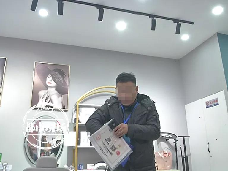 于是,记者拨打了南昌高新区市场监督管理局城东分局以及高新区卫生健康和疾病预防控制中心的投诉电话。随后,执法人员和店主周业成相继赶到了店内,对于郭女士的面部美容问题,她做了简单介绍。