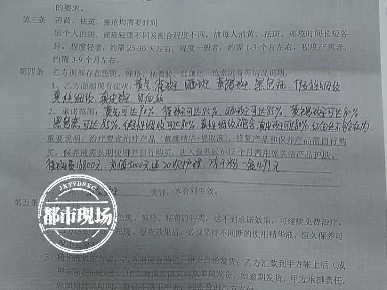 面诊后,郭女士对于这位“老师”所说的面部斑点问题,也有一些忌惮,随后在老板的推荐下,她决定花大代价祛斑。在支付了21800元之后,郭女士也与店家签了一份协议。