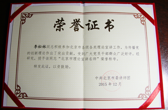 日前,首都理论宣讲工作会在京举办,会议由市委宣传部和市委讲师团主办。会议授予我校李松林教授、郭海燕教授“北京市理论宣讲名师”荣誉称号,此次共有10名为北京市理论宣讲工作做出突出贡献的专家学者获此殊荣。