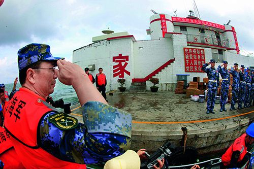 2010年,金一南赴南沙群岛,登上华阳礁。