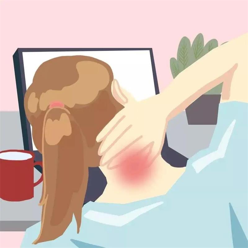 代偿的肌肉长期处于紧张状态形成劳损,表现出颈肩肌肉酸痛,用手触摸时会感到肌肉弹性降低、紧张发硬,晨起时频繁出现类似落枕的感觉。