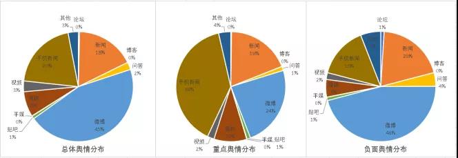 从总体舆情来源(平台)分布来看,微博占45%;重点舆情方面,手机新闻、新闻类媒体合计传播占比58%。负面舆情方面,微博负面信息量相对较大。