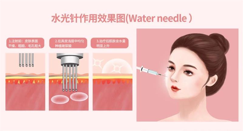 优点:水光针属于皮下注射,因此并不会对皮肤造成创伤。并且水光针选用的玻尿酸、胶原蛋白等对人体不会产生任何排异作用和副作用,都是非常安全的。