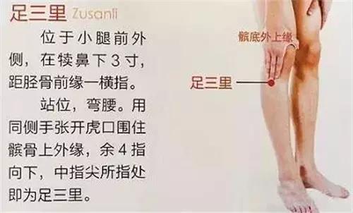 在膝盖下外侧,约四横指(约3寸)的小腿胫骨外侧有一凹沟处,这是强壮穴,力度按大一点,酸麻的经络传感可到脚背。拍打本穴可治一切肠胃消化系统疾病,包括消化不良、胃胀胃痛。