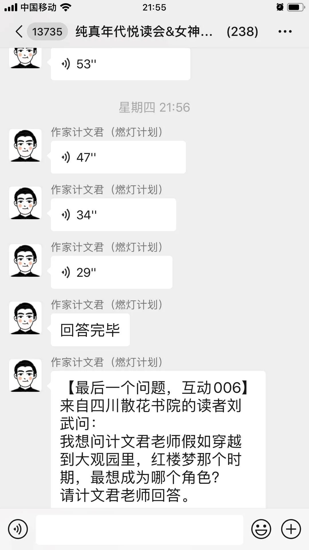 读者5:我想问计文君老师假如穿越到大观园里,红楼梦那个时期,最想成为哪个角色?