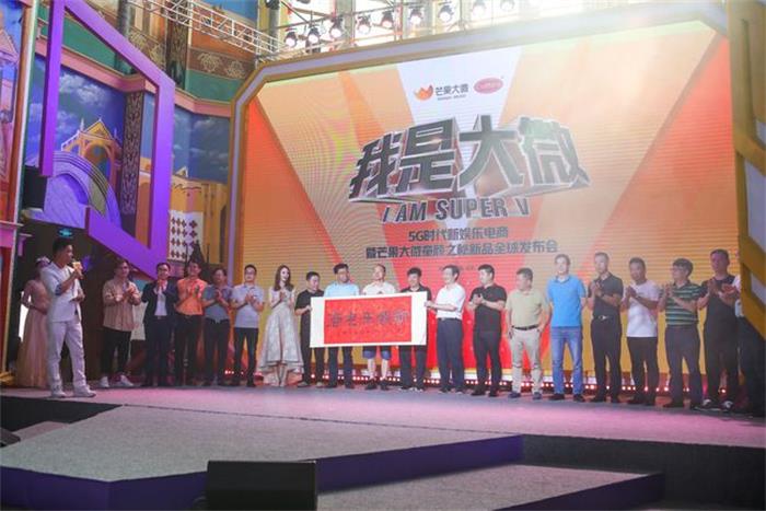 5G时代新娱乐电商正式启动,湖南广播电视局副局长谢跃进,金鹰节组委会主任孙建平,爸爸去哪儿总导演谢涤蔡,华谊兄弟电影小镇董事长刘启东,芒果大微总裁刘任华,全球大健康产业联盟主席刘东明,新娱乐电商CEO心霓儿,K大咖管鹏,社交电商行业意见领袖吴智银等领导上台揭幕。湖南卫视著名主持人国民村长李锐亲自主持。