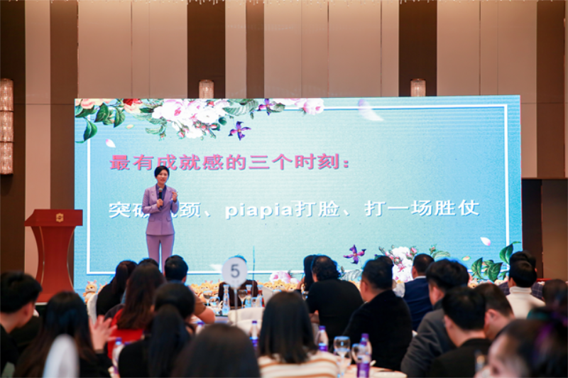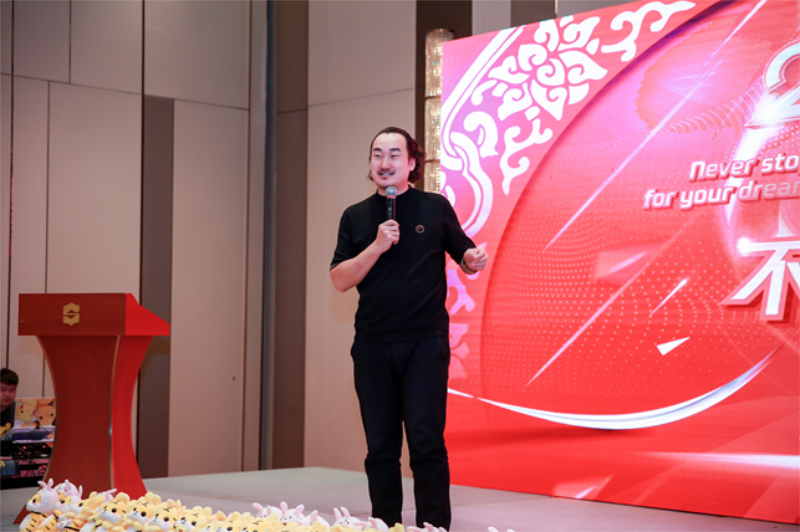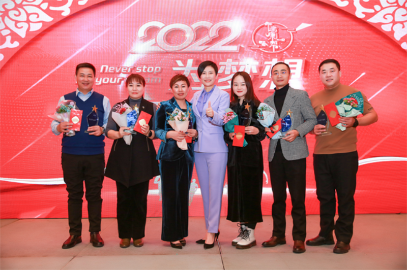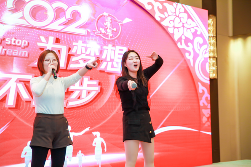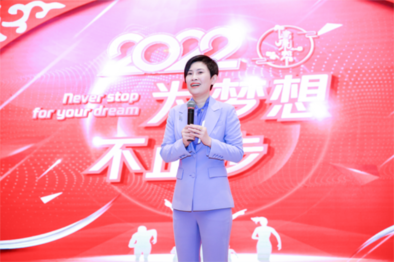 热烈的掌声中,王楠总裁上台致辞:对在场的全体员工表示衷心的感谢,也总结2021年全体员工的的努力与坚守!