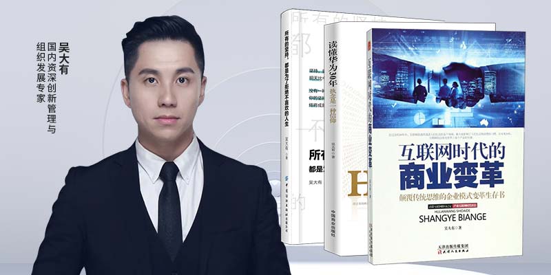 吴大有老师,是美国全球创新研究院(GIMI)认证专家,上海市工业互联网协会数字化转型首席专家,数据资产国际标准化工作组专家组成员,2020年全球中英数字化创新论坛大会主办人,美国斯坦福大学行为设计学大师B.J.FOGG授证专家、宾大沃顿中心国际顶尖智库高际研修班结业认证,中国全球化智库(CCG)创新研修班结业认证,全球自组织管理合弄制中国首批研修班结业认证,港大SPACE中国商业学院客席讲师,清华、复旦、上交、浙大EMBA班特聘讲师,获得过中国管理思维心理学应用科学进步奖(2020)以及中国十大创新杰出培训人物奖(2015)。他,还著有《互联网时代的变革法则》《读懂华为三十年》《管人真功夫》等出版作品。