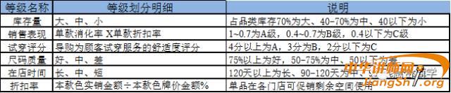 由于鞋类产品季节消费特征较为明显,部分时尚鞋款最适合的销售推广周期甚至只有45天,一个普通门店通常会有200-300个款,近千个款色(SKU)。为了快速清晰地监控单款/色商品在每个门店的销售状态,“商品动态分级管理”三项重要技术起到重要的作用。