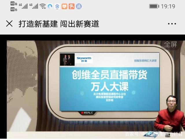 在启动仪式中刘东明老师还为创维近万名员工准备了2个小时的精彩培训。他讲到,从2018年开始,短视频全面爆发,成为新的营销利器。抖音、快手等作为最低成本的营销平台与流量洼地,每天有成千上万支短视频在此发布,短视频成为很多公司和产品营销获客的新渠道。从2019年开始,特别是2020年疫情期间,隔离经济涌现,网红直播带货成为新风口。著名化妆品品牌“林清轩”受疫情影响157家门店歇业,而开业的170余家门店生意寡淡,6天时间,整体业绩下滑90%,依靠淘宝直播,林清轩创造的业绩是去年同期的145%;银泰百货让柜台导购变身“云柜姐”线上卖货,一名导购直播3小时服务的消费者人数,相当于复工6个月服务的客流;罗永浩首播三小时带货1.1亿;快手主播辛巴的徒弟蛋蛋直播带货超过4.8亿;淘宝直播薇娅全球首次直播卖火箭。