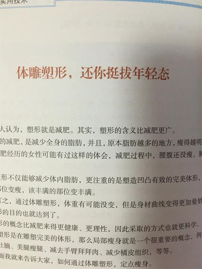 看到《康养实用技术》后,我先浏览目录,寻找自己想要的内容。竟然发现第八章中,是美容美体的经络调养。其中包含面雕、塑形、淡斑、除痘、美白、瘦肚、减腿等一系列女性关注的话题。