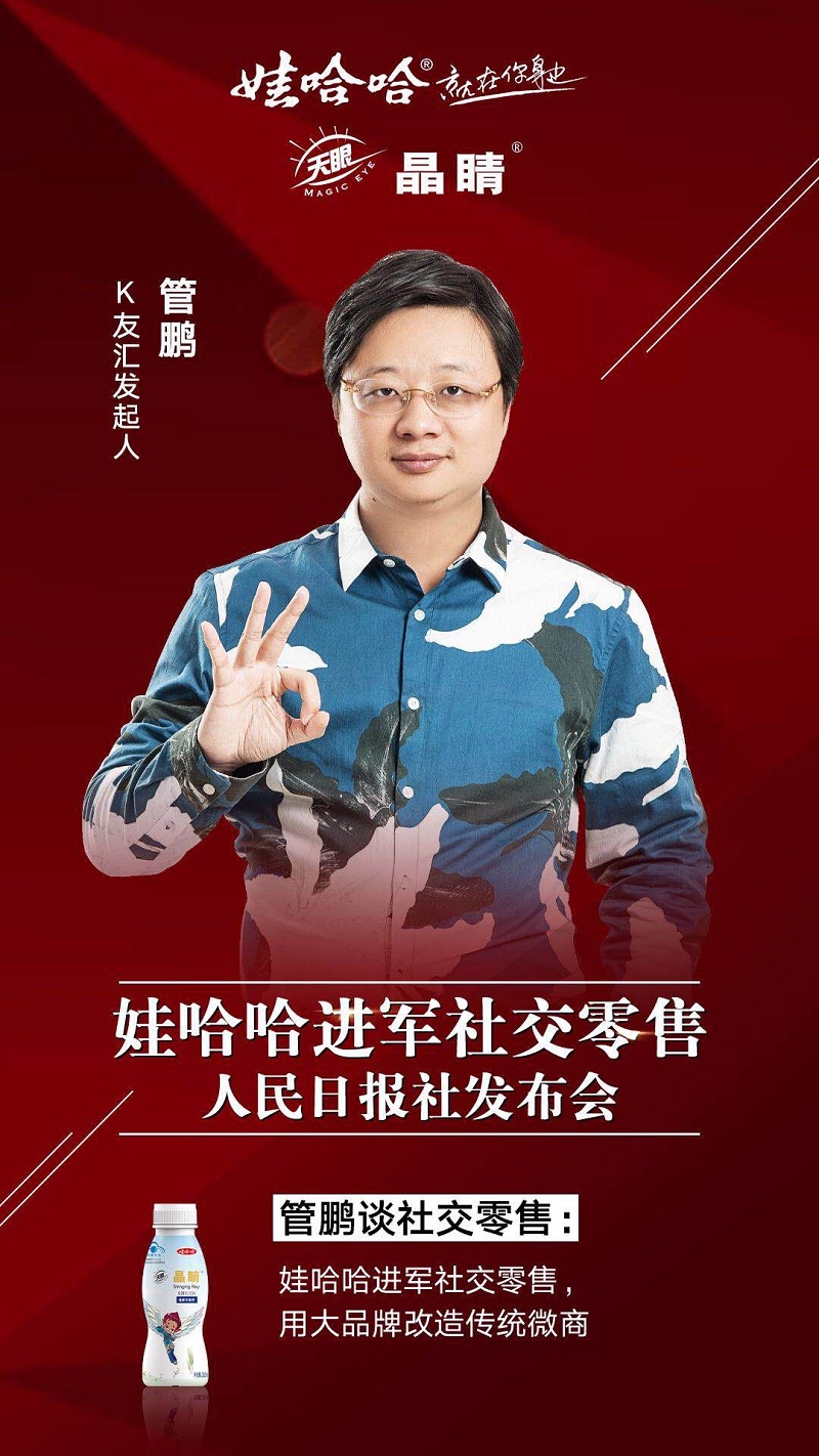 管鹏老师是互联网时代下的成功人物,兼有中国社群时代领军者、K友汇发起人、傲华荟联合创始人、17火联合创始人、中国社群联盟联合发起人、炎黄网络创始人、开友品牌管理(上海)有限公司董事长、开友商学院荣誉院长、百度创业俱乐部理事、微赢投资控股集团董事、泽平微商事业部总裁等多项头衔。管鹏老师有长达十年的互联网经验,是新经济下走向事业巅峰的典型范例。凭借着自身的经验和实力,管鹏老师连续多年受邀参与中国最具影响力的互联网创业者盛会中国站长年会,同时连续三年做为百度联盟理事参与百度联盟峰会。近期,管鹏老师受邀参加了娃哈哈产品发布会,作为电商领域的领军人物,管鹏老师此次出席对于双方而言都很有意义。