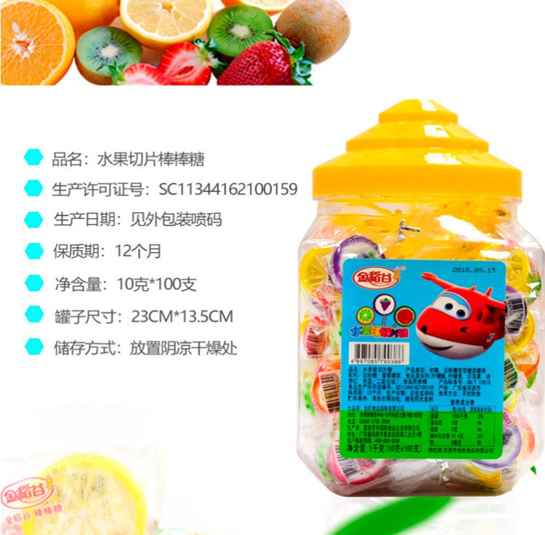 陈瑞武:六一儿童节礼物切片糖果棒棒糖果罐装喜糖水果硬糖儿童休闲零食100支1000g
