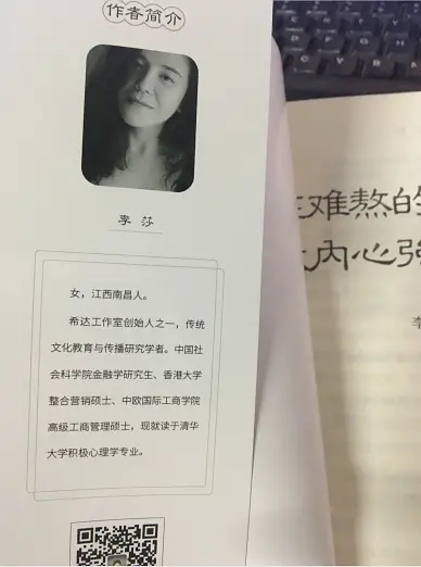 该书的作者李莎,不仅是希达工作室的创始人,还出版了多本书,非常高产。作者简介附上的黑白照,看起来特别温柔沉静,但又有种无形的力量感,看起来特别舒服,可谓才貌双全。