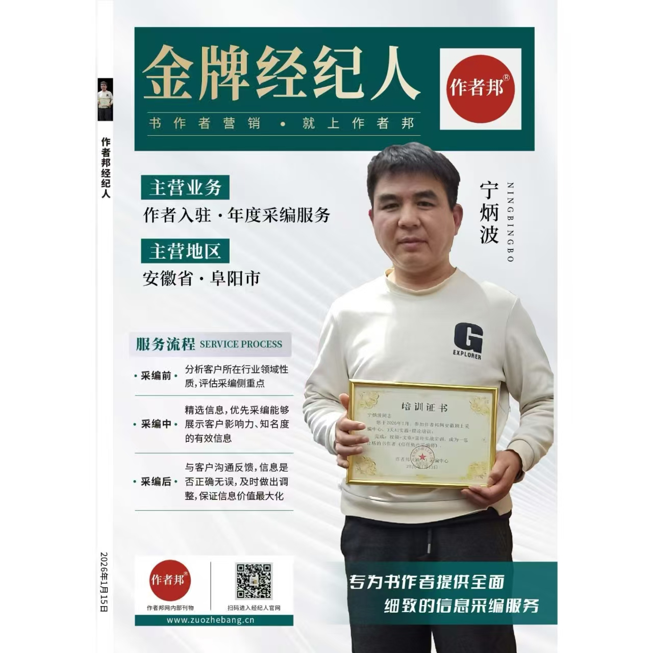 宁炳波从行业新人起步,在吴艳老师的悉心指导与同事的互助下,深耕作者邦采编业务,凭借专业能力成长为金牌经纪人。作者邦以高性价比服务助力创作者,小投入即可撬动品牌价值的大增长。