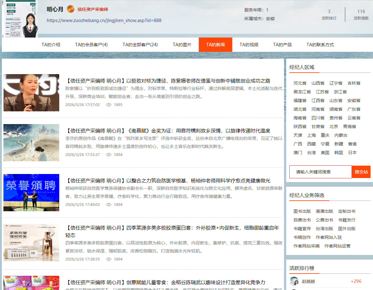 每一份职业的转变,都是一次奔赴热爱的新启程。本次专访的主角明心月,如今是作者邦一名专业的信任资产采编师,在文字与视频的采编领域深耕不辍,用专业能力为客户传递价值与信任。谈及自己的职业经历,明心月坦言:“我叫明心月,来作者邦之前是做文员的,现在担任信任资产采编师这个职位。” 从文职工作到信任资产采编,身份的转变背后,是对全新领域的探索与深耕,更是在文字创作与内容传播路上的全新出发。