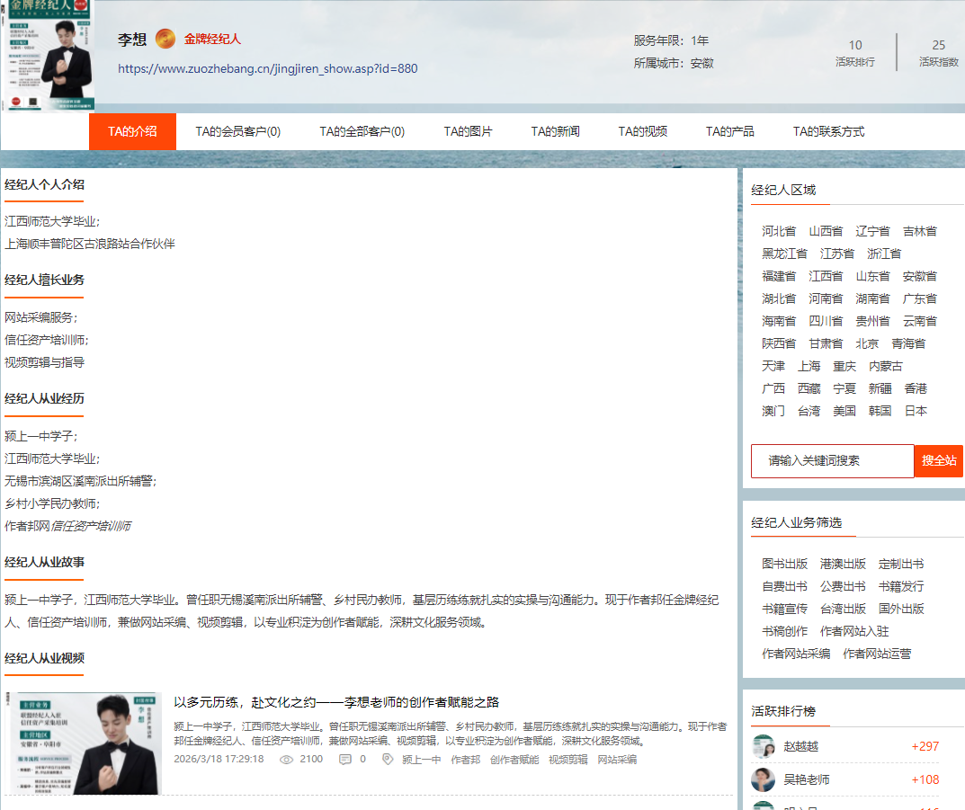 从代课老师到信任资产培训师,李想始终怀揣教育初心,以陪伴为翼,以专业为灯,在作者邦颍上分公司的培训岗位上默默耕耘。他用真诚温暖学员,用专业赋能成长,诠释了培训师的责任与担当。未来,相信他将继续坚守初心,在培训之路上步履不停,助力更多学员在作者邦的平台上绽放光彩,为企业人才培养事业注入源源不断的温暖力量。