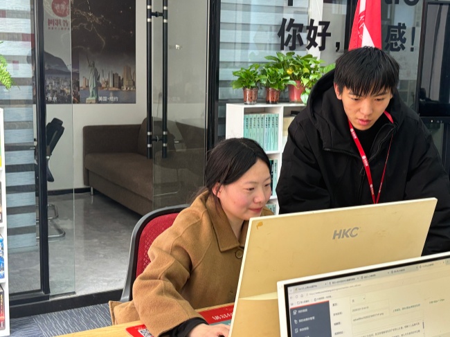 【李想老师(左一)为我们讲解步骤,解答疑难。很细心的帮我们培训同学修改作业里的不足。】