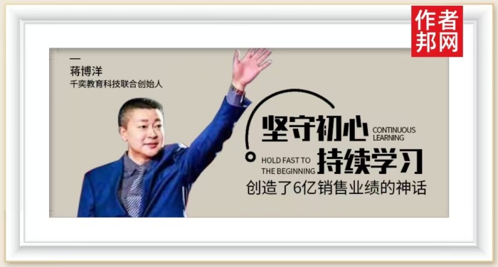 百战归来再学习,前进一步拾初心……博语洋言!蒋博洋~千奕教育科技联合创始人,千奕教育科技董事会董事,将“传统文化“的道,与“市场营销”的术,有效结合,推动他的人生不断地创新~创造~创业。