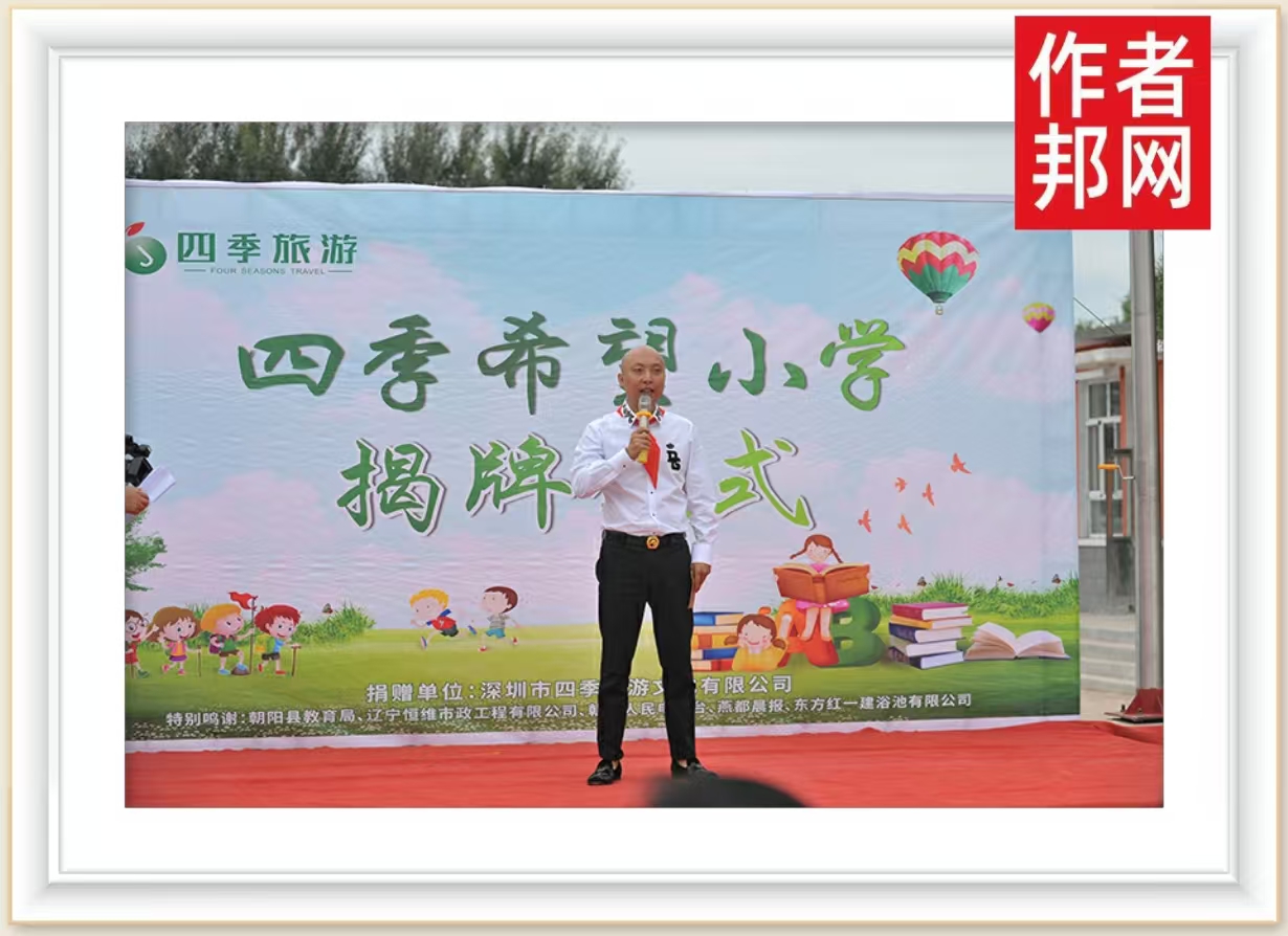 丁志强在自身取得成就之后,首先想到的就是用自身价值去回馈社会。爱心传递希望,用爱点燃梦想,2019年,四季旅游集团成立了第一所希望小学——朝阳县东乌兰河硕四季希望小学。