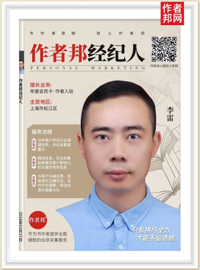 在数字化时代,每一位书作者不仅需要创作出优秀的作品,还需要通过有效的渠道将这些作品与自己的信息展示给更广泛的读者群体。在上海的松江区,有这样一位备受赞誉的专业人士——李雷,作为作者邦的一名经纪人,他专注于为该地区的书作者提供网站信息收集与上传服务,帮助他们更好地连接读者、推广作品。