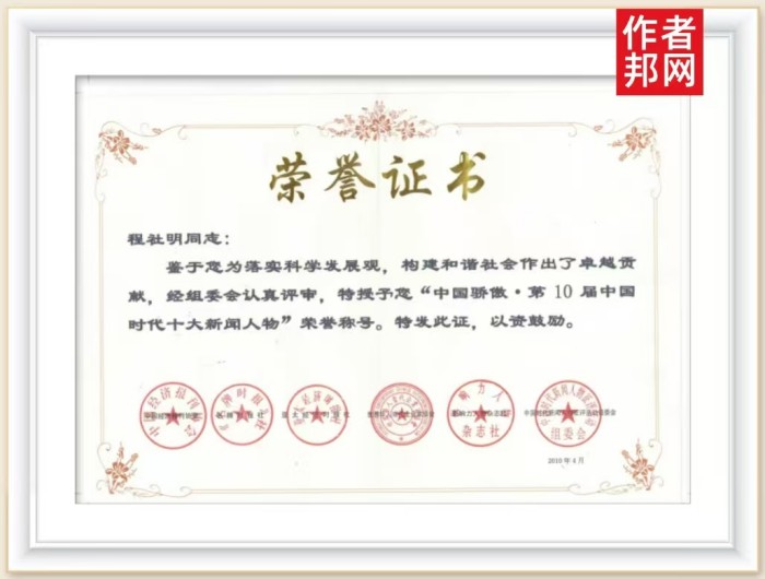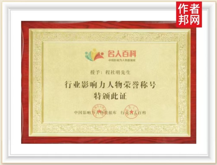 (程社明老师被名人百科授予“行业影响力人物荣誉称号”)