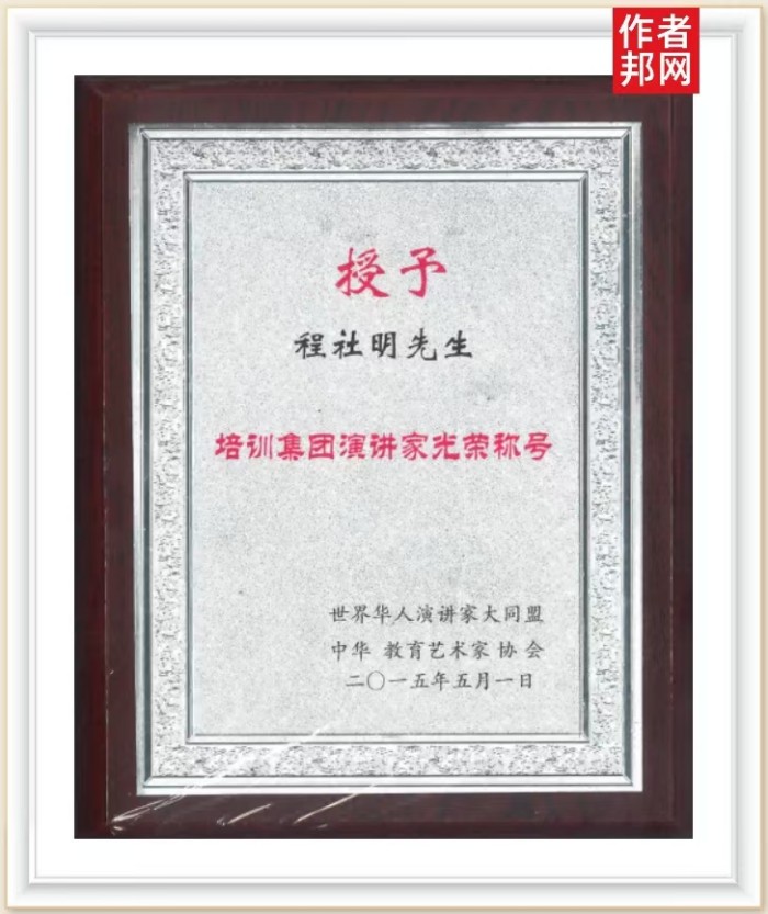 ( 程社明老师被授予“培训集团演讲家光荣称号”)