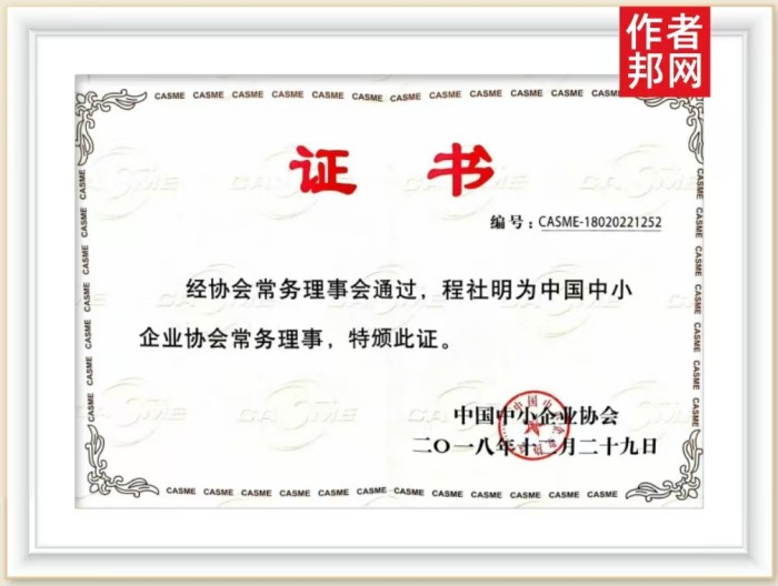 (程社明老师被证明为全国中小企业管理咨询服务专家信息库专家)
